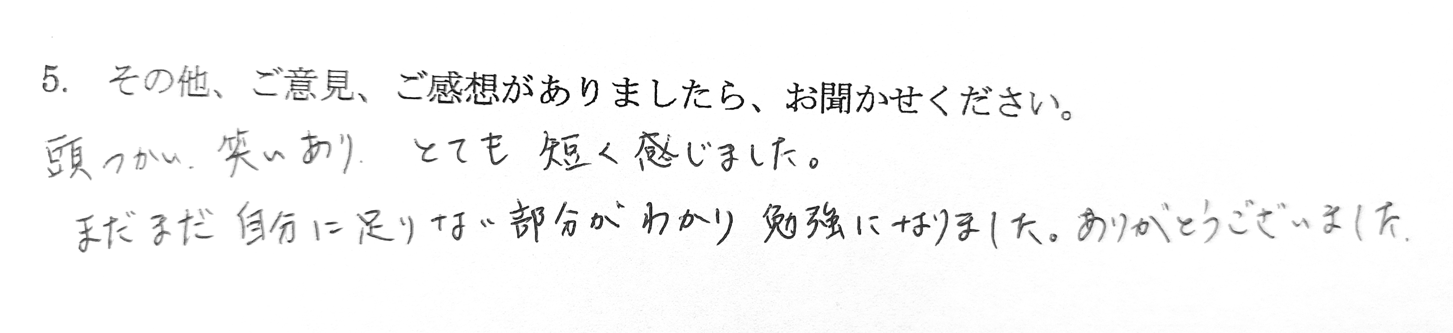 まだまだ自分に足りない部分がわかり、勉強になりました。