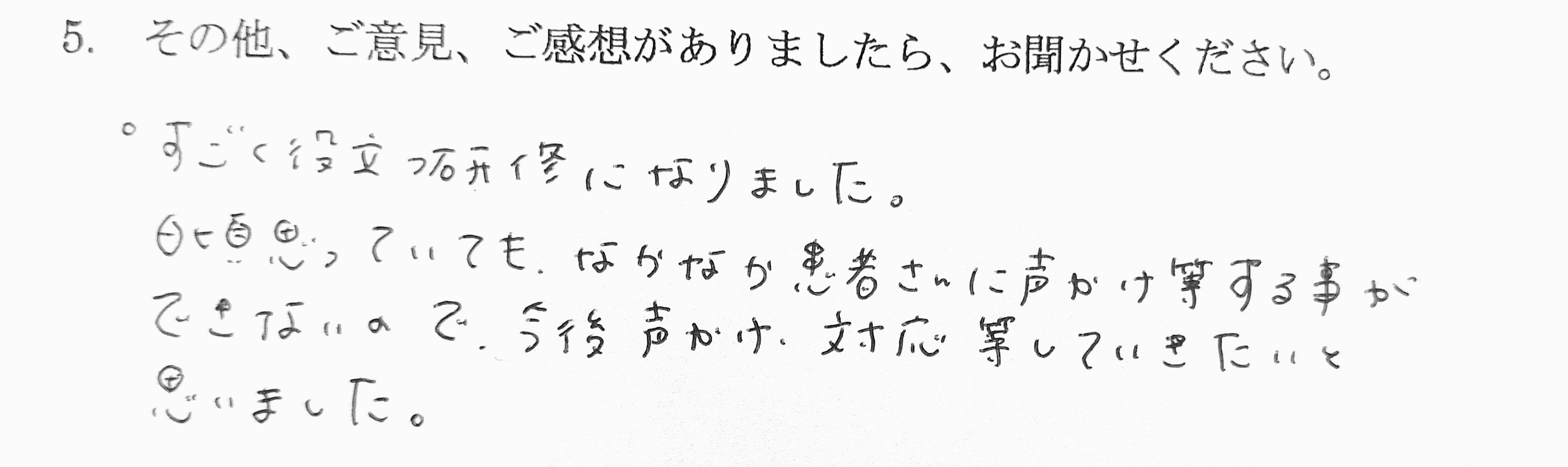 日頃思っていても、なかなか患者さんに声かけ等する事ができていないので、