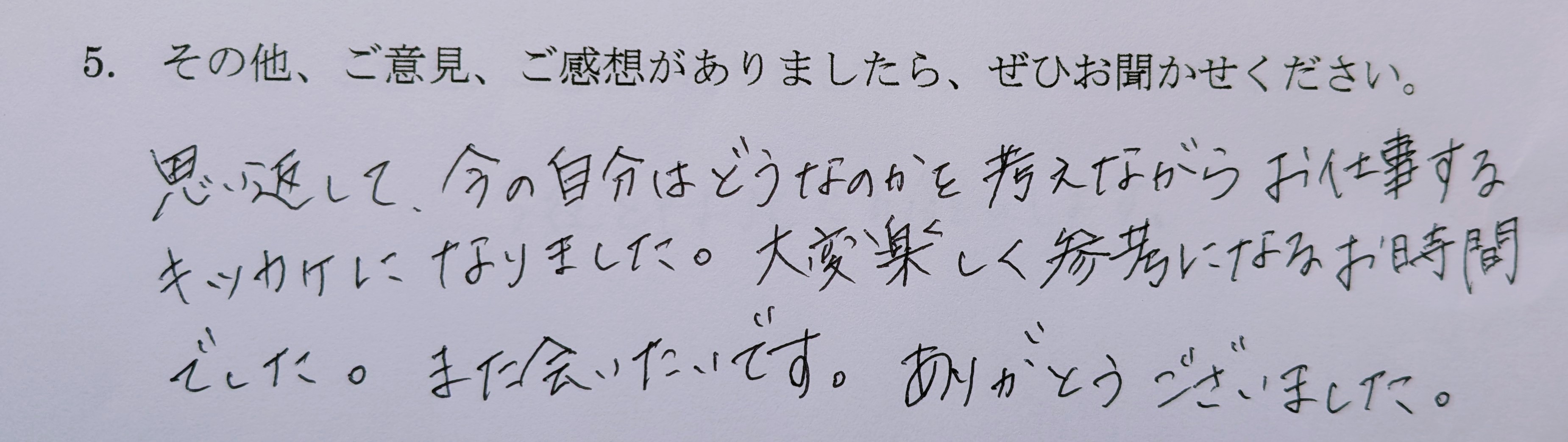 思い返して、今の自分はどうなのかを考えながらお仕事するキッカケになりました。